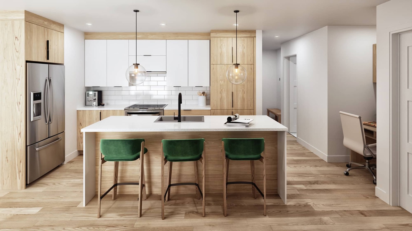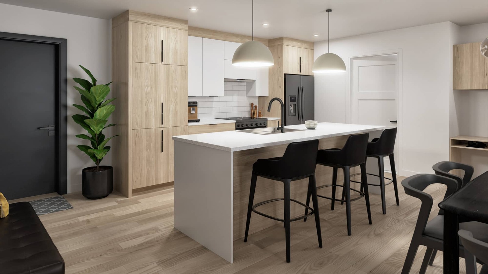 Le projet bénéficie du service Bell Pure Fibe 1,5 Gbps, incluant le Wi-Fi et les prises filaires, pour une connectivité rapide, stable et adaptée au télétravail comme au divertissement.